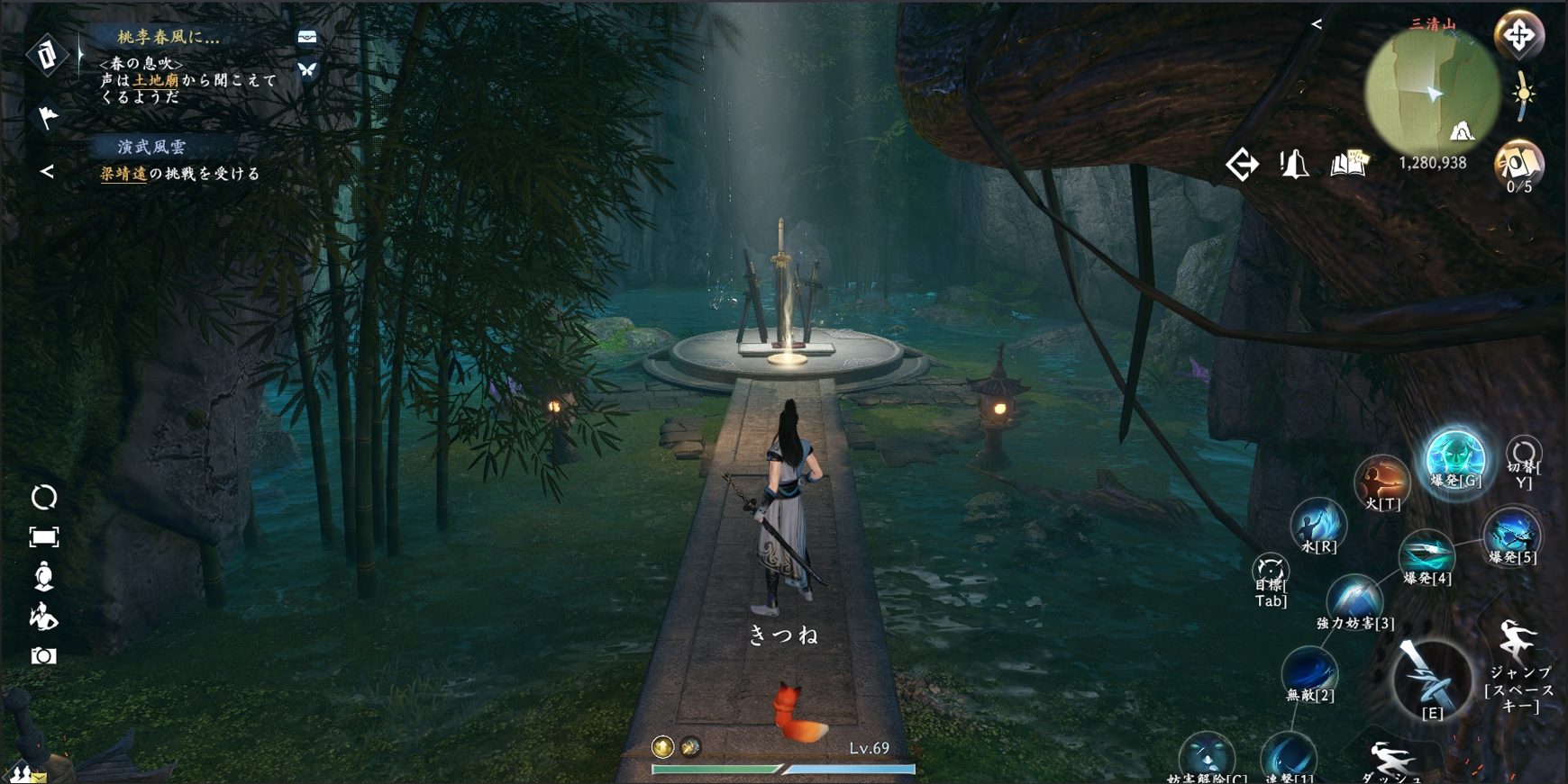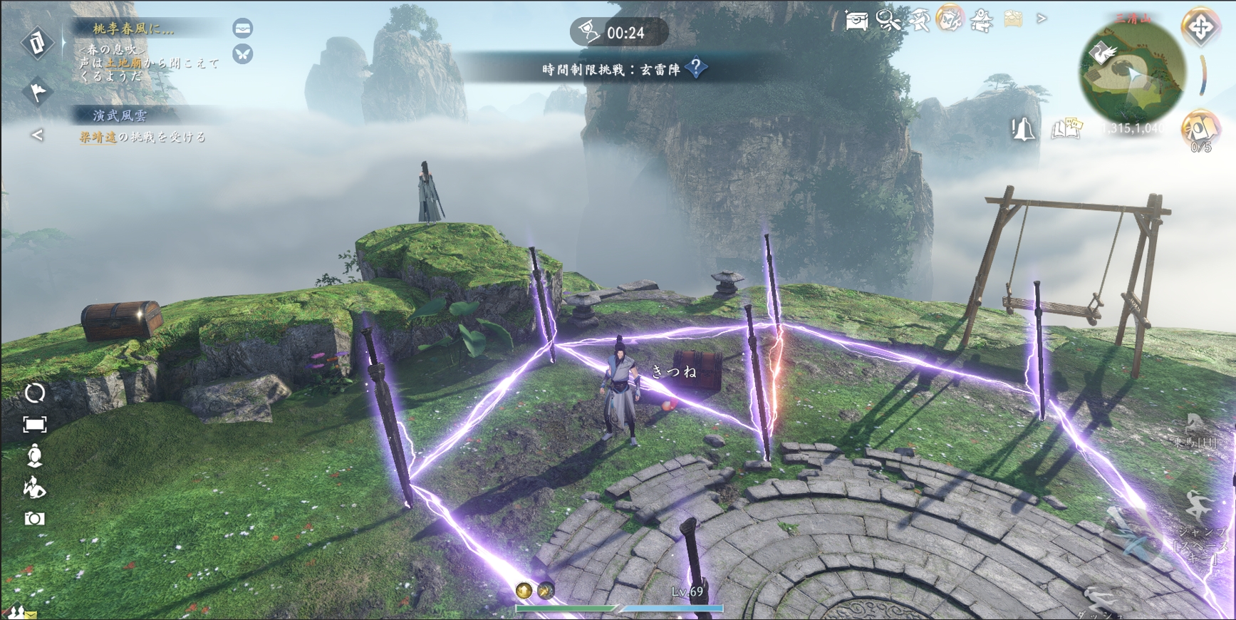 さらに注目すべきは、一部のスキルが五行元素と呼応し、より深い戦闘メカニズムを秘めていることです。三清山(1314,1270)で玄雷陣の謎を解き、電弧を突破して宝箱を開ければ【雷霆万鈞】のような元素スキルを習得できます。敵の弱点を突くだけでなく、「自然反応」による電導、霧造り、風喚びといった戦術効果を実現し、戦闘の戦略性と没入感を大いに高めます。