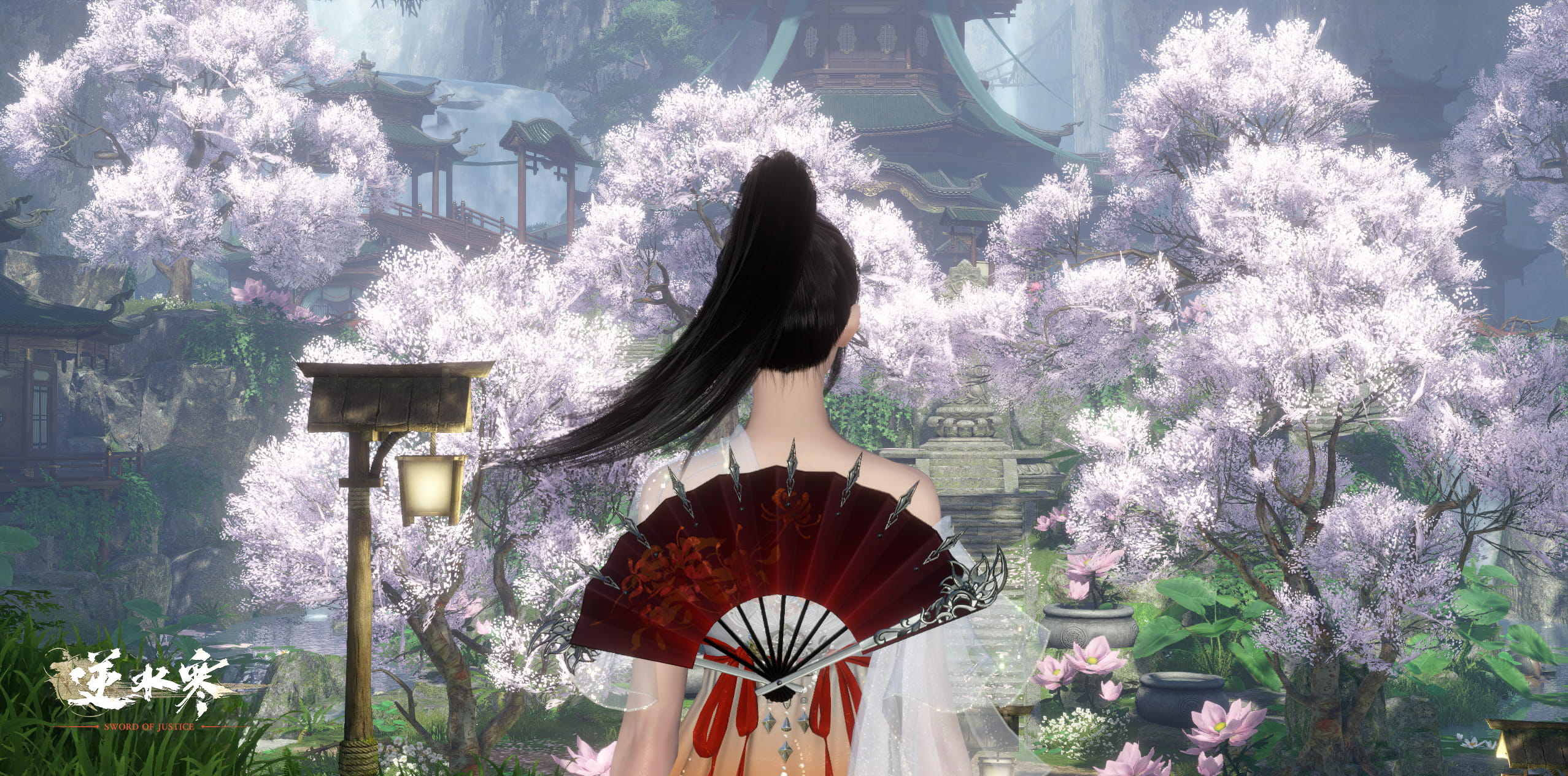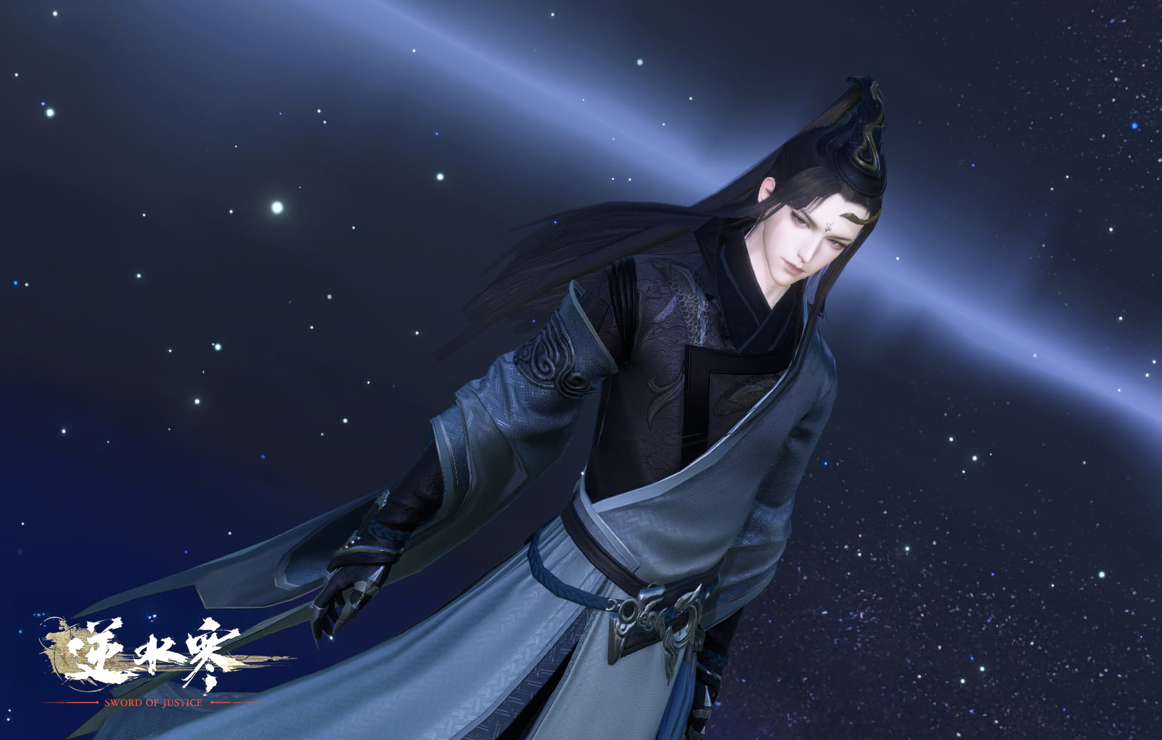 さらに装飾品「烏金」と衣装「踏仙掃玉」を獲得するチャンスもあります。上から下へと黒白のグラデーションが広がり、まるで水墨画のような幻想的な美しさです。薄絹の灰色の袍と合わせて、より飄々とした雰囲気を醸し出します。淡い水紋が身体を包み、鯉が戯れる様は、君子の温雅な品格を感じさせます。