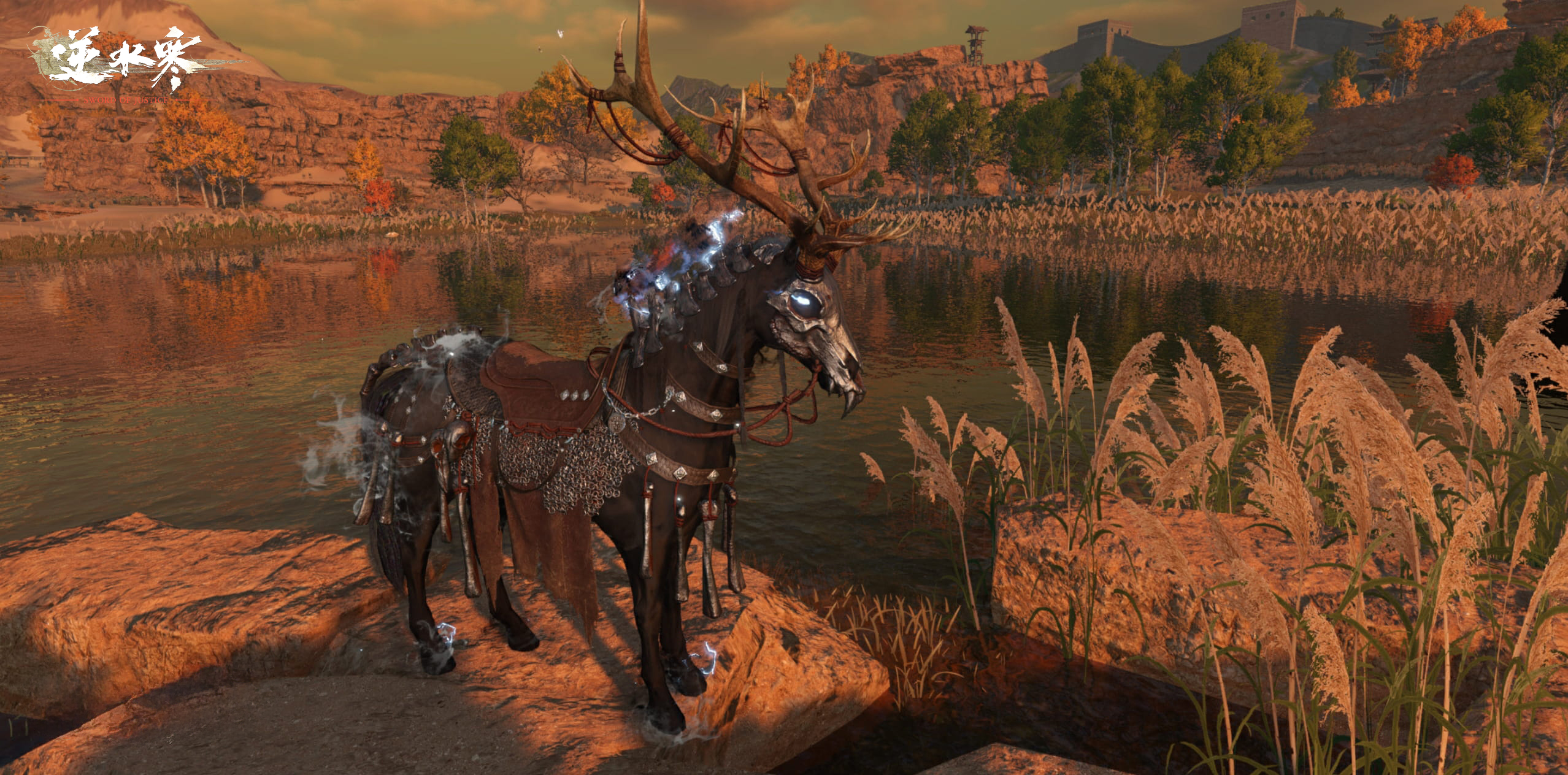 さらに鞍「冥鹿」を手に入れるチャンスもあります。漆黒の仮面の下には、計り知れない力を秘めた駿馬が潜みます。黒い冥気が瞳から溢れ出し、全身を包み込んで渦巻きます。頭上に聳える巨大な鹿の角は、圧倒的な威圧感を放ちます。