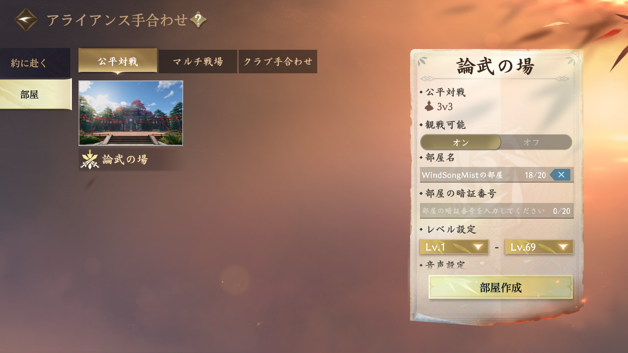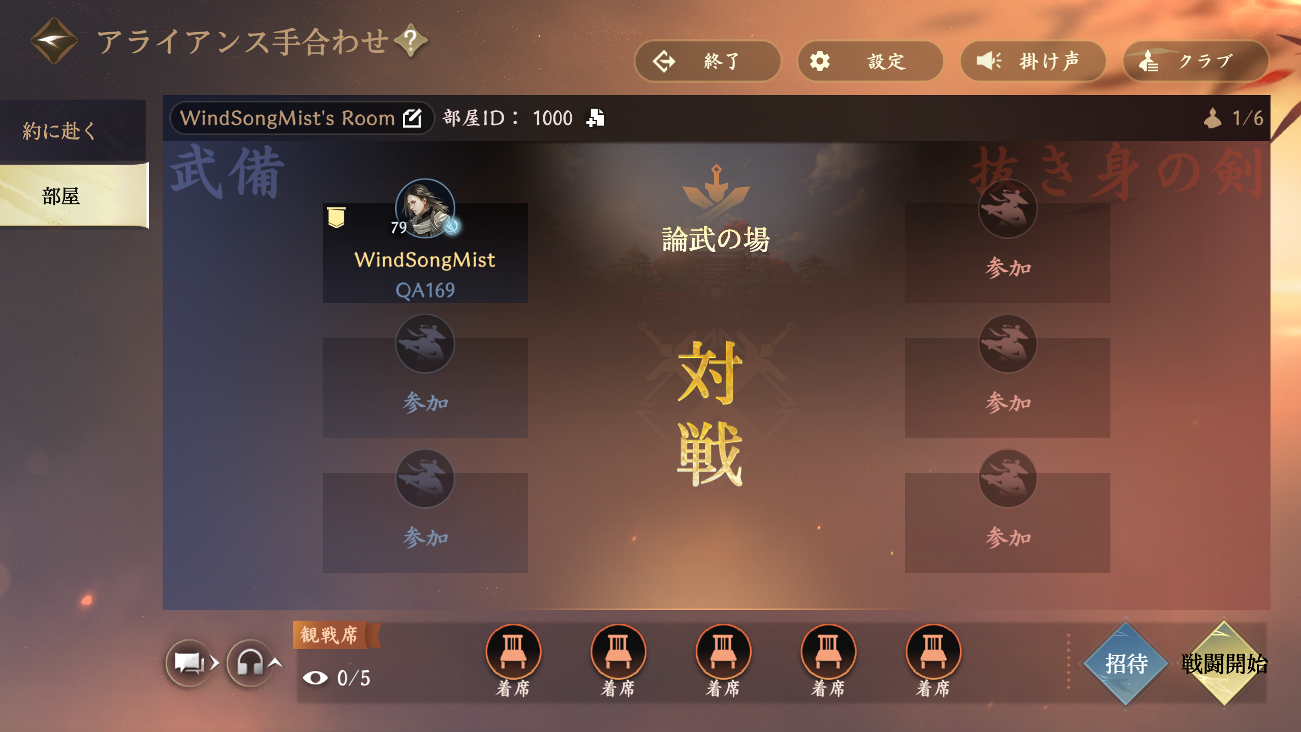 3.マッチング:3人パーティ間の手合わせ、天下演武、ギルド戦の手合わせが可能です。対局は、相手が要請を受けた後に開始できます。パーティ間の手合わせでは、双方の人数が同等である必要があります。