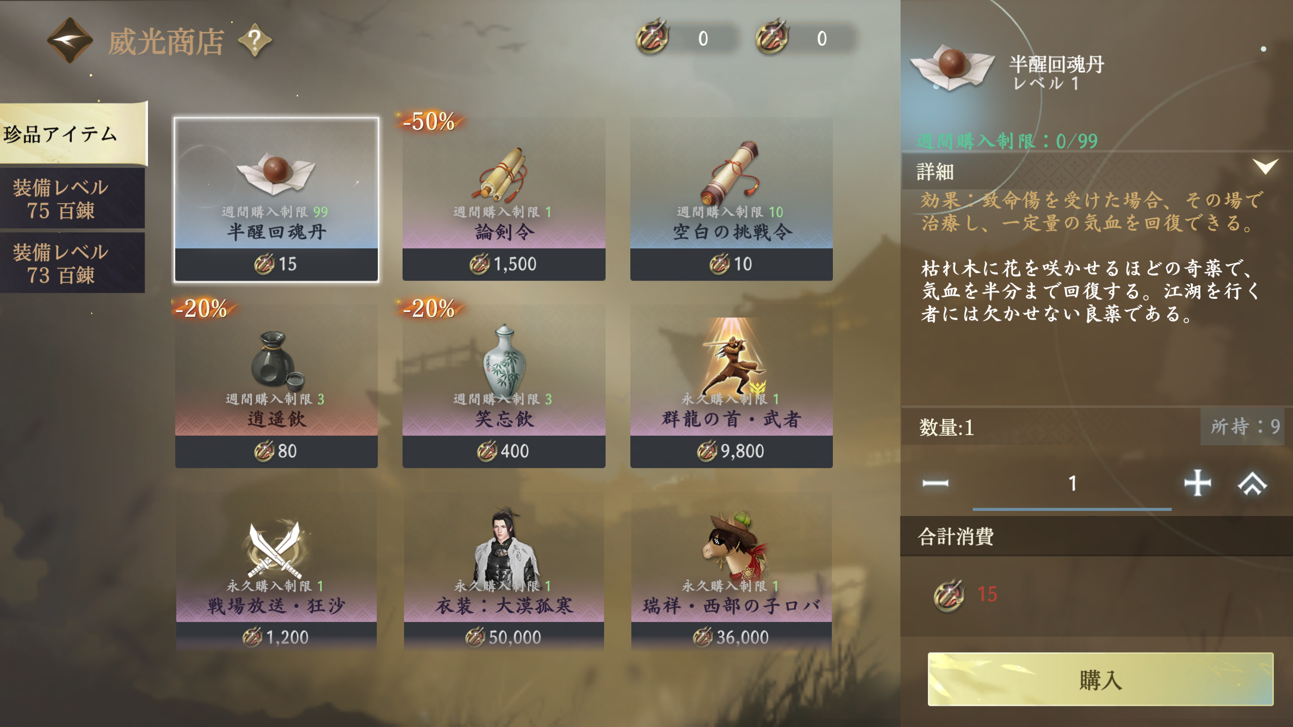 威光ポイントは様々な方法で獲得できます。簡単に獲得できる方法もあれば、より多く稼ぎたい方向けのものもあります。武道大会に参加すると大量の報酬を入手でき、予選の全試合に参加するだけで獲得できます。勝敗に関係なく、カジュアルなプレイヤーでも簡単に獲得できるようになっています。野外の対戦、盗賊捜査、天下演武など、様々なPvPモードでも入手でき、戦闘好きなプレイヤーも思う存分戦いを楽しめられます。PvPモードで伝説ランクに達すると、対戦での威光ポイント収益が大幅に向上し、より速くポイントを貯められるようになります。