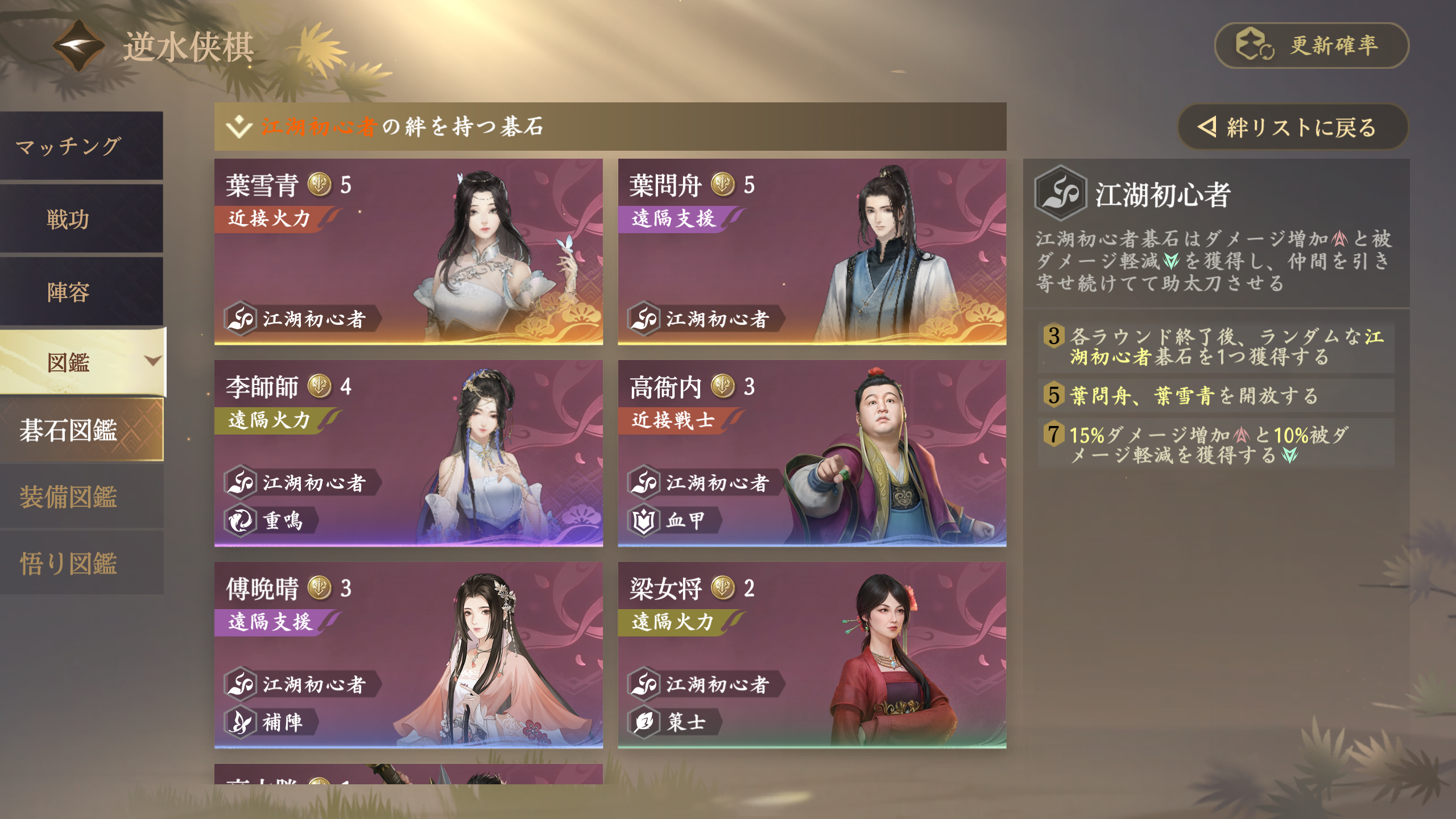 「逆水侠棋」は長期にわたるシーズン運営を始め、テーマとコンテンツを定期的に更新して、フレッシュな体験をお届けいたします。この小さな碁盤の上で、全ての同門たちとの再会を楽しみにしています。共に天下を賭け、江湖の味わいを楽しみましょう。