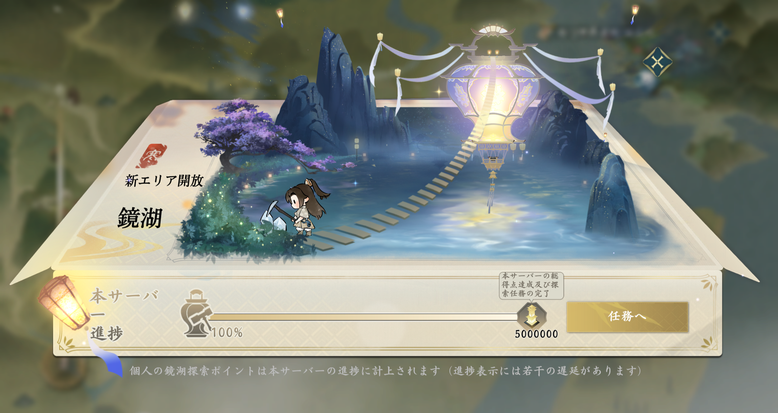 皆様は鏡湖へ赴き、足を止めて風景を楽しんだり、自由に探索したり、「鏡湖・水下幻境」で水中コンテンツを体験することもできます。探索で新しい外観を獲得でき、鏡湖探索ポイントは本サーバーの鏡湖天梯上昇に貢献します!