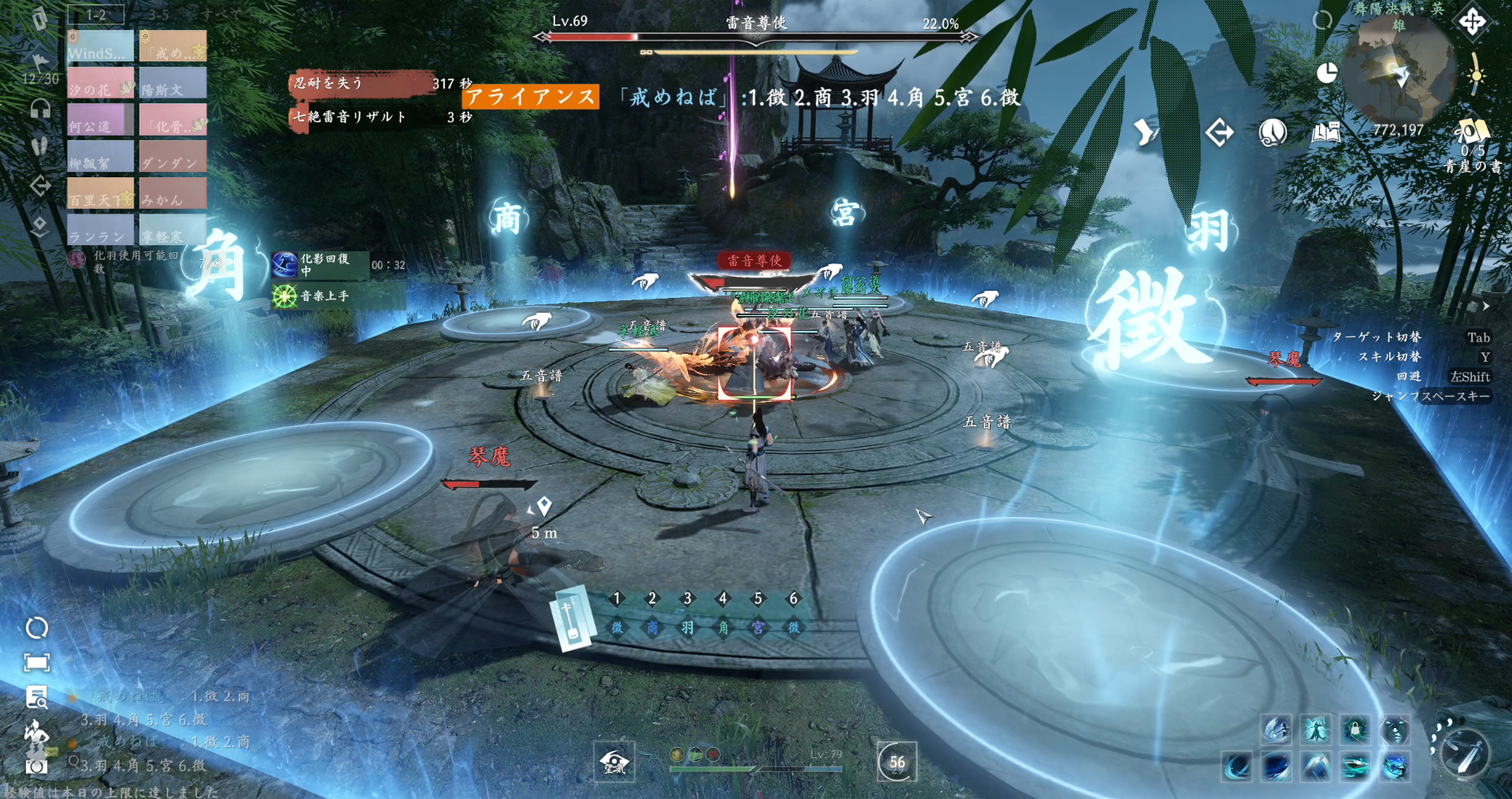 1.琴楽譜に入った後、「七絶雷音リザルト」のカウントダウン終了前に、すでに入ったプレイヤーは五音の円から出てはいけません!出ると即座に失敗判定となります。