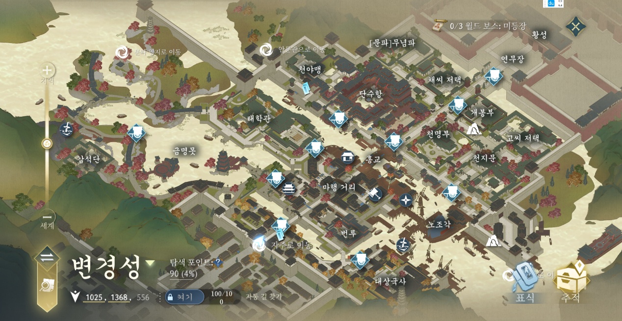 이후 다시 월드맵으로 돌아가 가이드 아이콘을 클릭하면, 해당 지도에서 자동 길찾기를 사용하기 위한 조건과 진행도를 확인할 수 있습니다.