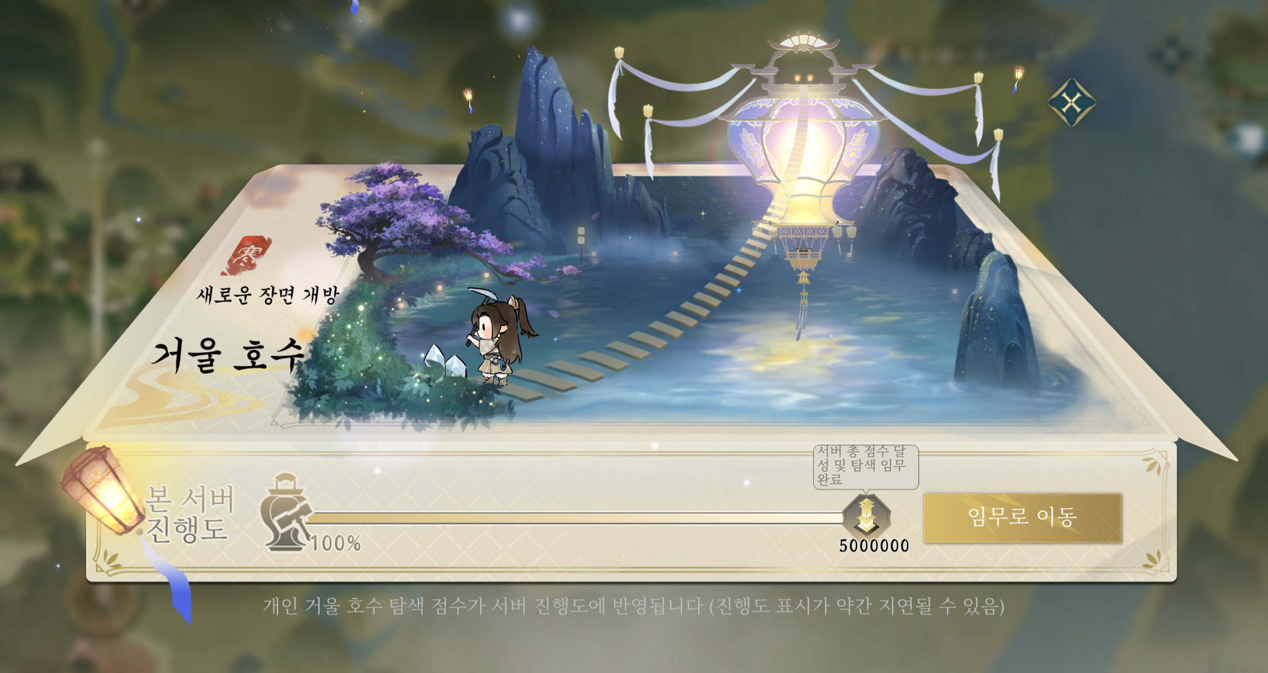 [신규 장면 탐색] 빛나는 별과 강이 맞닿는 신규 탐색 지역으로 [거울 호수]가 개방됩니다. 동문 여러분은 거울 호수로 이동해 풍경을 감상하거나 자유롭게 탐색할 수 있으며, [거울 호수·수중 환상]에서 수중 콘텐츠도 즐기실 수 있습니다. 탐색을 통해 새로운 외관을 획득할 수 있으며, 거울 호수 탐색 포인트는 서버 내 거울 호수 계단 상승에 반영됩니다.
