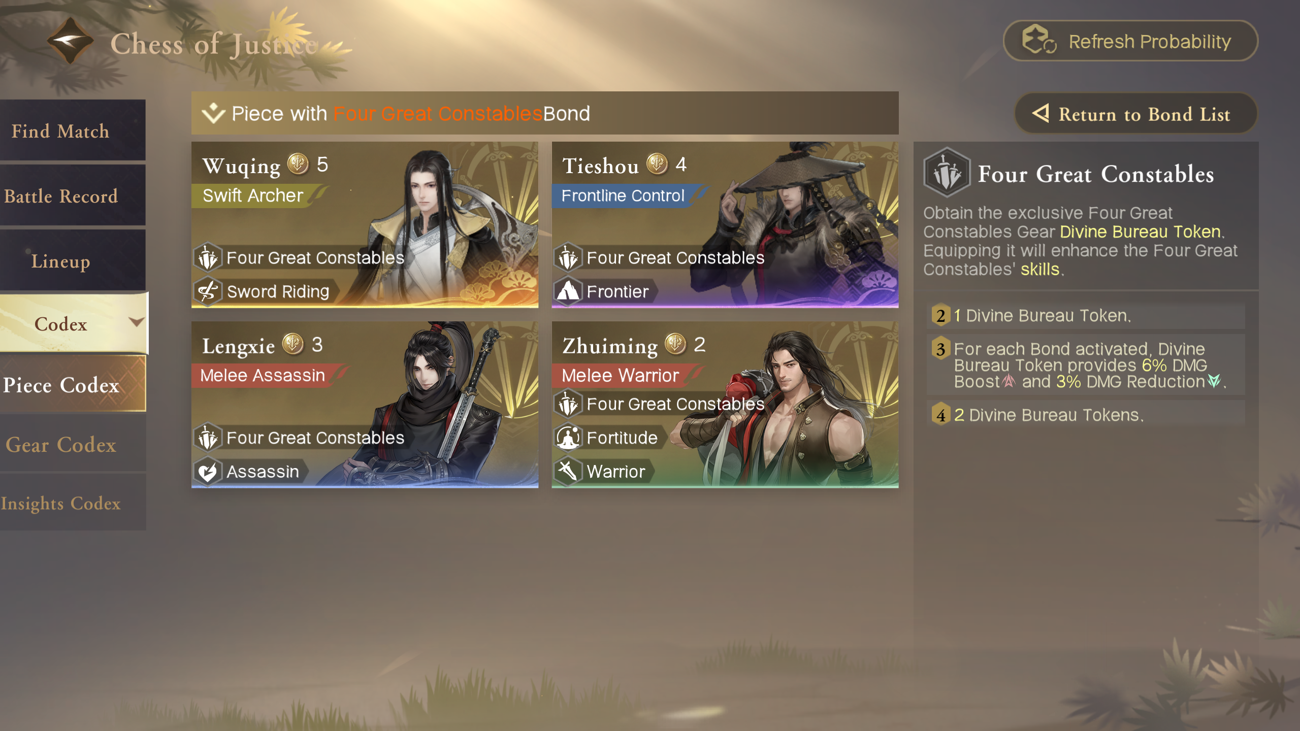 Sword of Justice has brought to life a vibrant Martial World of many factions, each defined by its own character. In [Chess of Justice], each faction's bond effects and each hero's martial skills offer a unique gameplay experience.