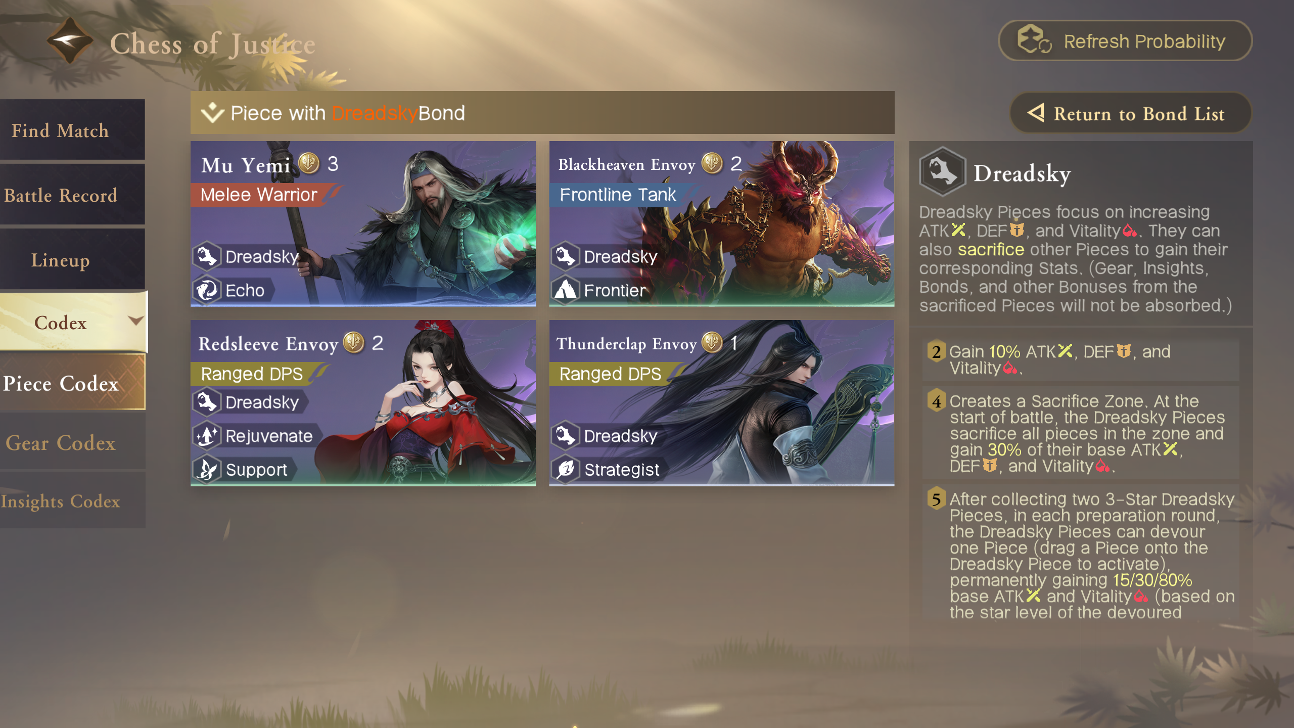 The demonic force once locked in bitter combat at Sundance City—the [Dreadsky] faction—now joins the fray. These fiends are steeped in demonic power: just as they once performed refinement on Acolytes in Sundance City, the Dreadsky Bond allows players to refine allied pieces, granting permanent attribute growth. Should [Dreadsky] further corrupt other units through the [Scroll] and assemble a 5-Dreadsky composition, their dark power erupts in full, even consuming allied pieces directly.