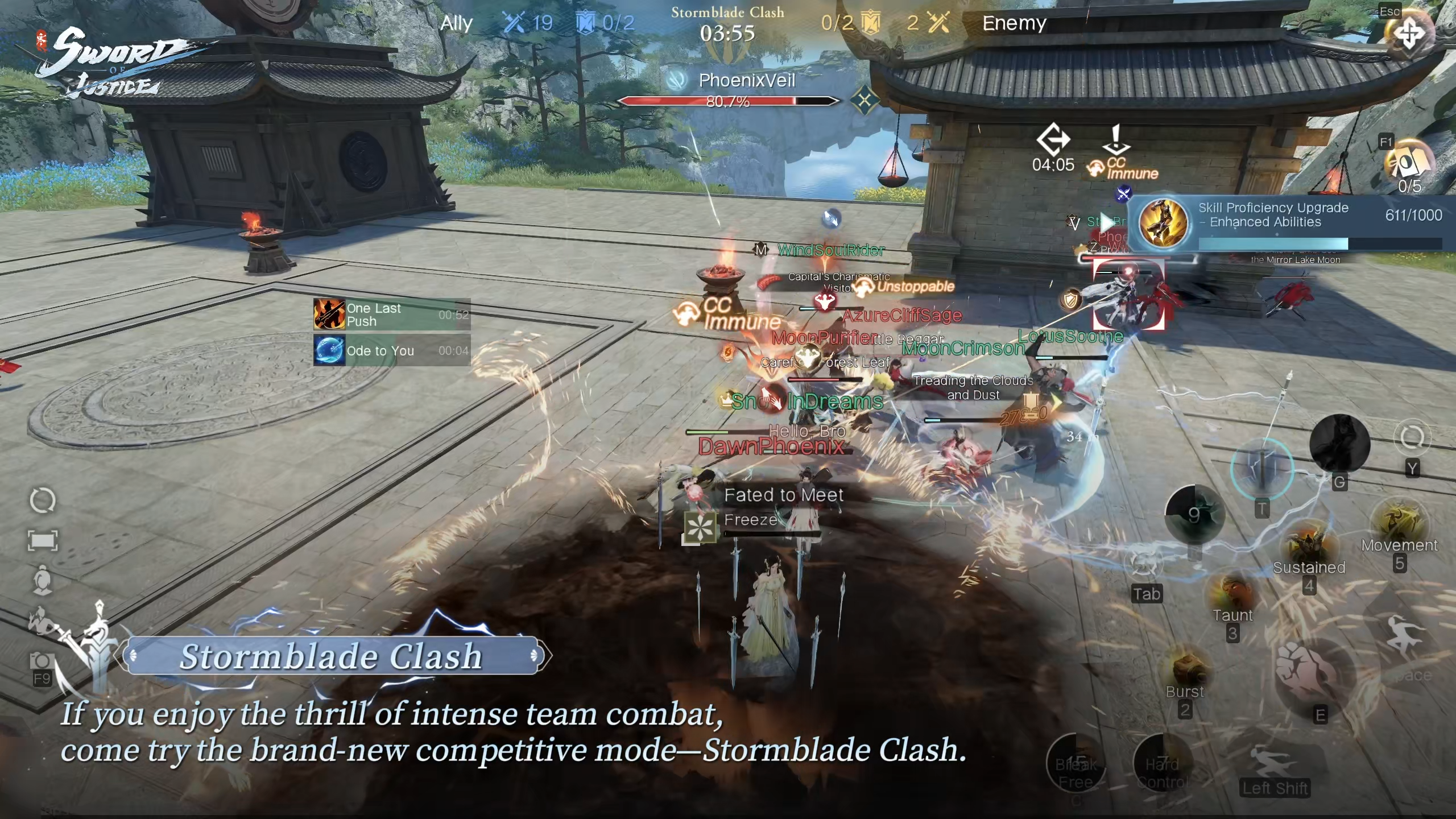 In terms of ruleset, [Stormblade Clash] follows the same framework as [Martial Arts Tournament]. Real stats apply, and you can queue solo or as a group of up to 6. Rally your friends and dive into an exhilarating team battle anytime!