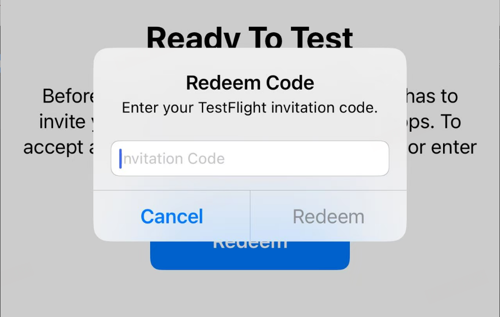 (2) If you do not have TestFlight installed on your device, the system will prompt you to install it first. After downloading the TestFlight app, you can return to the previous step to redeem your activation code.