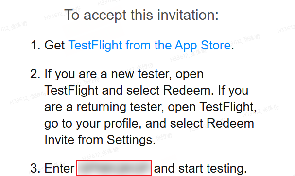 (The code provided by TestFlight is shown in the red box. If you see a message saying "Code Expired," please refresh the page to get the latest code.)