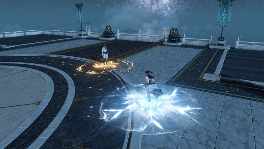 Twin Shades is a dual boss battle where the brothers Xi Zheng and Dong Jun will attack players using Thunder and Ice moves, respectively. Defeating one will cause the other to enter a berserk mode, so while carefully handling the dual threat, try to defeat them simultaneously.