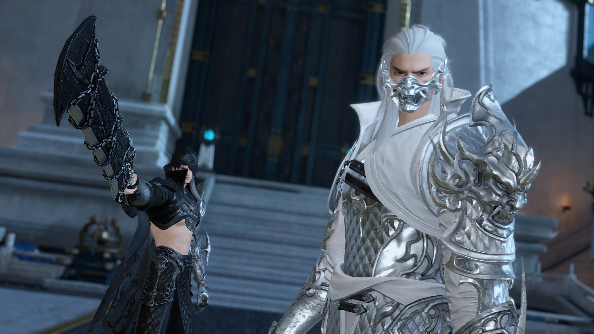 The twin assassins of Mirror Sky Pavilion are as ominous as the black and white reapers, heralding the approach of death. Wielding two heavy swords in a crisscrossing dance, they unleash icy lightning and thunderous frost spikes, leaving no place to hide and sealing one's fate within their deadly embrace.