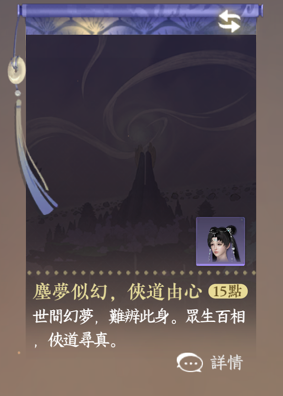 首先是阮阮的禮物:代表月亮,幫助同門化身「月野兔」,送上滿滿的節日祝福!1.3.2版本更新後,新增成就【塵夢似幻,俠道由心】,完成後可以獲取全新髮型【凜刃/野月】。