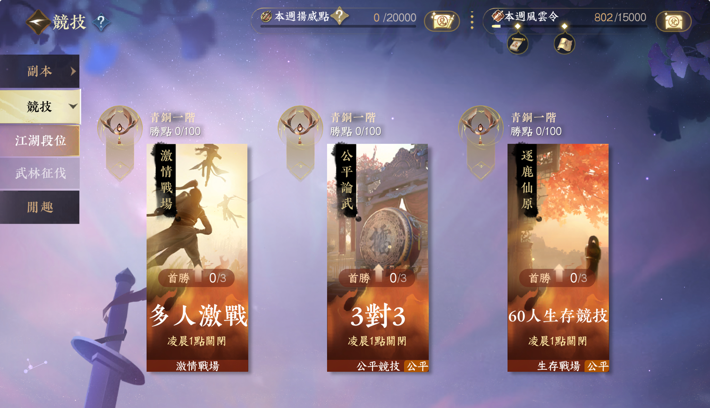 新賽年更新後,段位在蓋世絕倫以下的同門參與公平論武/試劍天下/滄海奪峰時,如同門為敗方陣營群龍之首,會有一定勝點加成(低於獲勝方加成)以表彰同門競技永不言棄的行為!