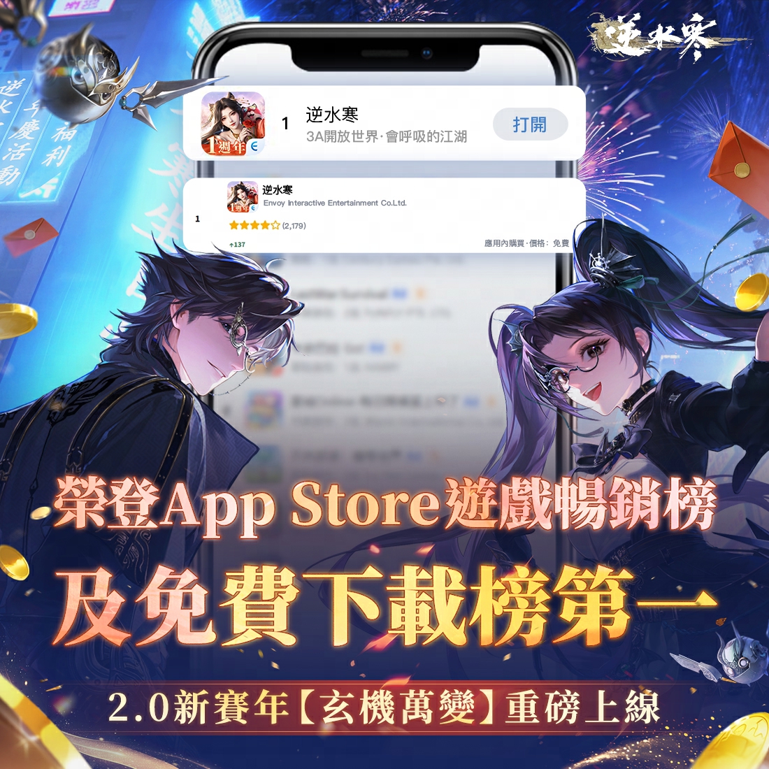 賀今日遊戲暢銷榜、免費下載榜第一!雙榜單登頂!逆子一歲,同門萬歲!