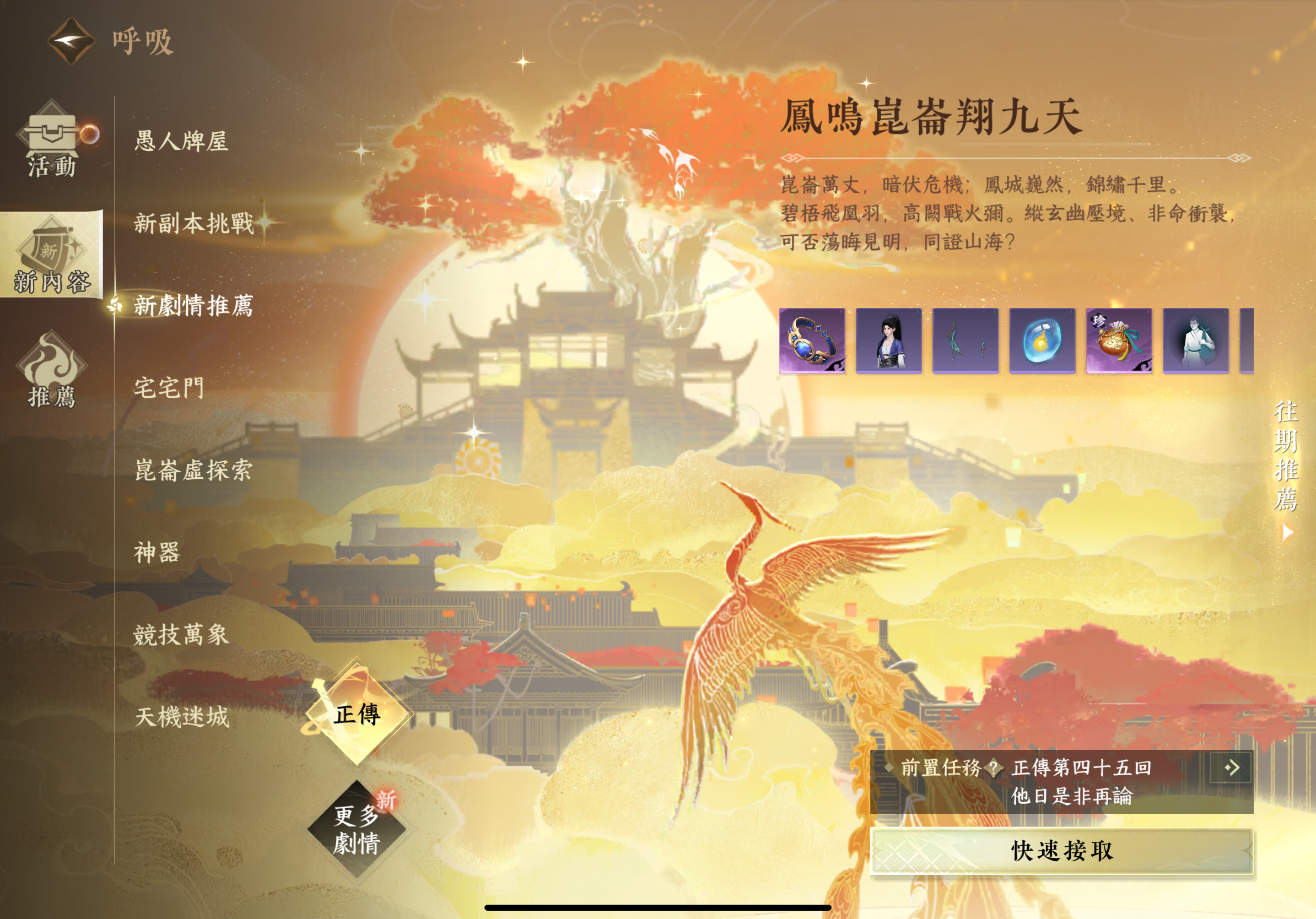 阮阮這幾天的笑點、哭點和情緒,都被新版本開啟的正傳劇情《鳳鳴崑崙翔九天》承包了,快來看看這 4 大不得不玩的理由: