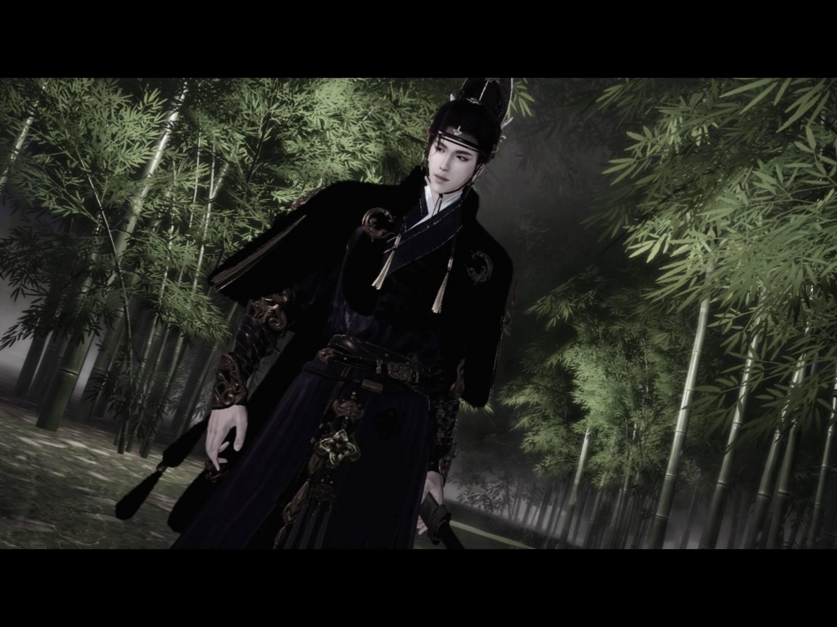 幽暗的翠竹林中,角色一襲黑衣勁裝,散發著令人屏息的俠客冷冽。那抹冷峻的面容在忽明忽暗的光影下更顯立體,舉手投足間盡是江湖傳聞中那種高深莫測、遺世獨立的孤傲與霸氣。