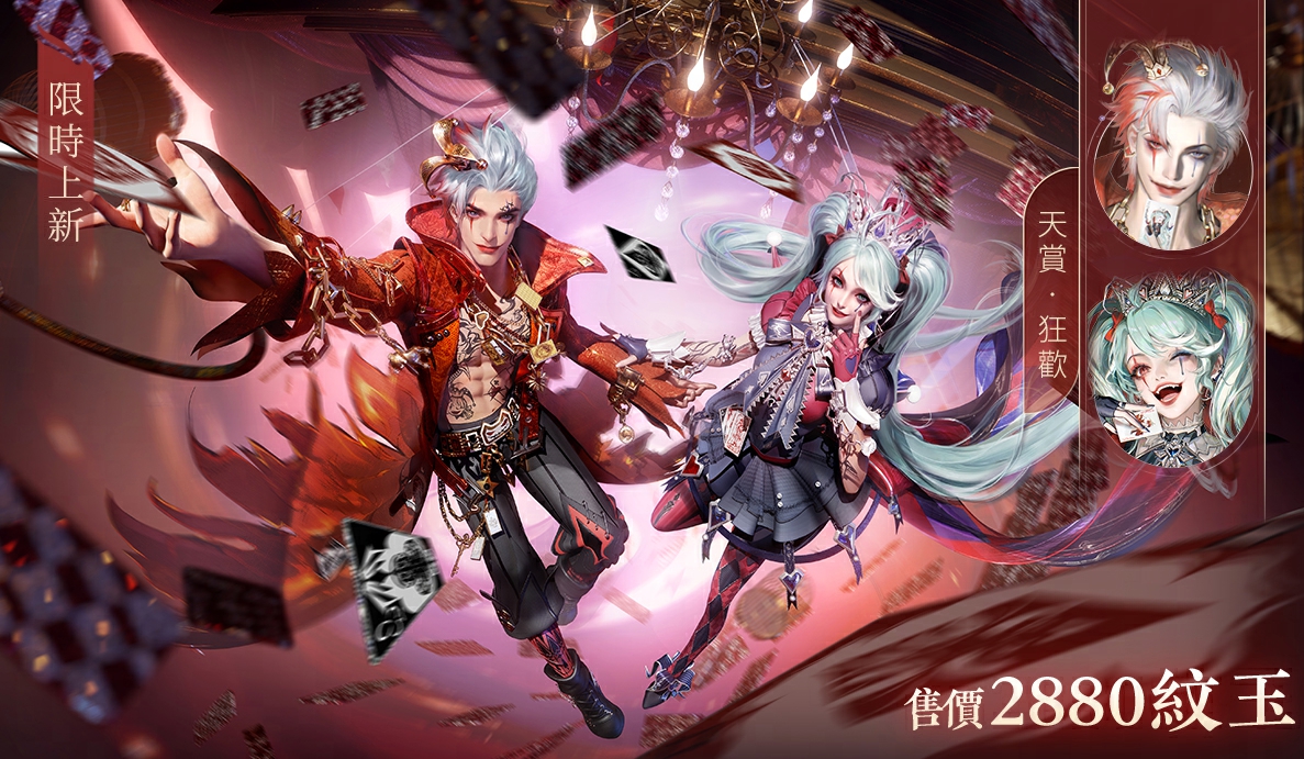 🎪狂歡主題時裝【幻夢巡禮】限時熱鬧登場!售價2880紋玉,可使用代金券、半價券折扣購買。買一送八,可同步解鎖黑髮頭像、帽飾、面飾、技能【喧鬧禮盒】、專屬妝容、單人與雙人特效及MVP結算動畫。