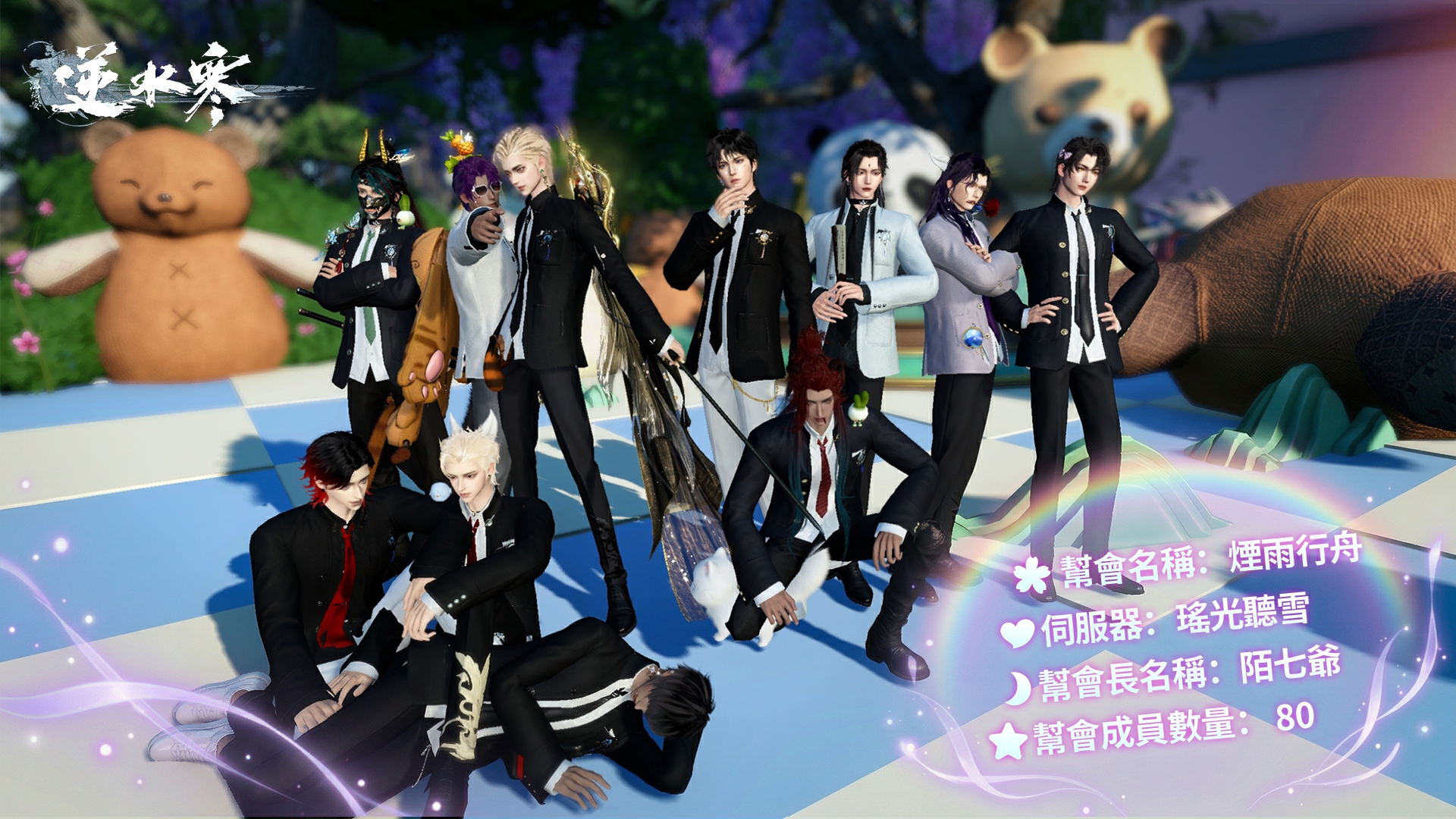位於【瑤光聽雪】伺服器,由幫會長【陌七爺】 帶領的【煙雨行舟】,目前已匯聚了 80 位不凡之士,正持續譜寫著最不平凡的俠義故事!