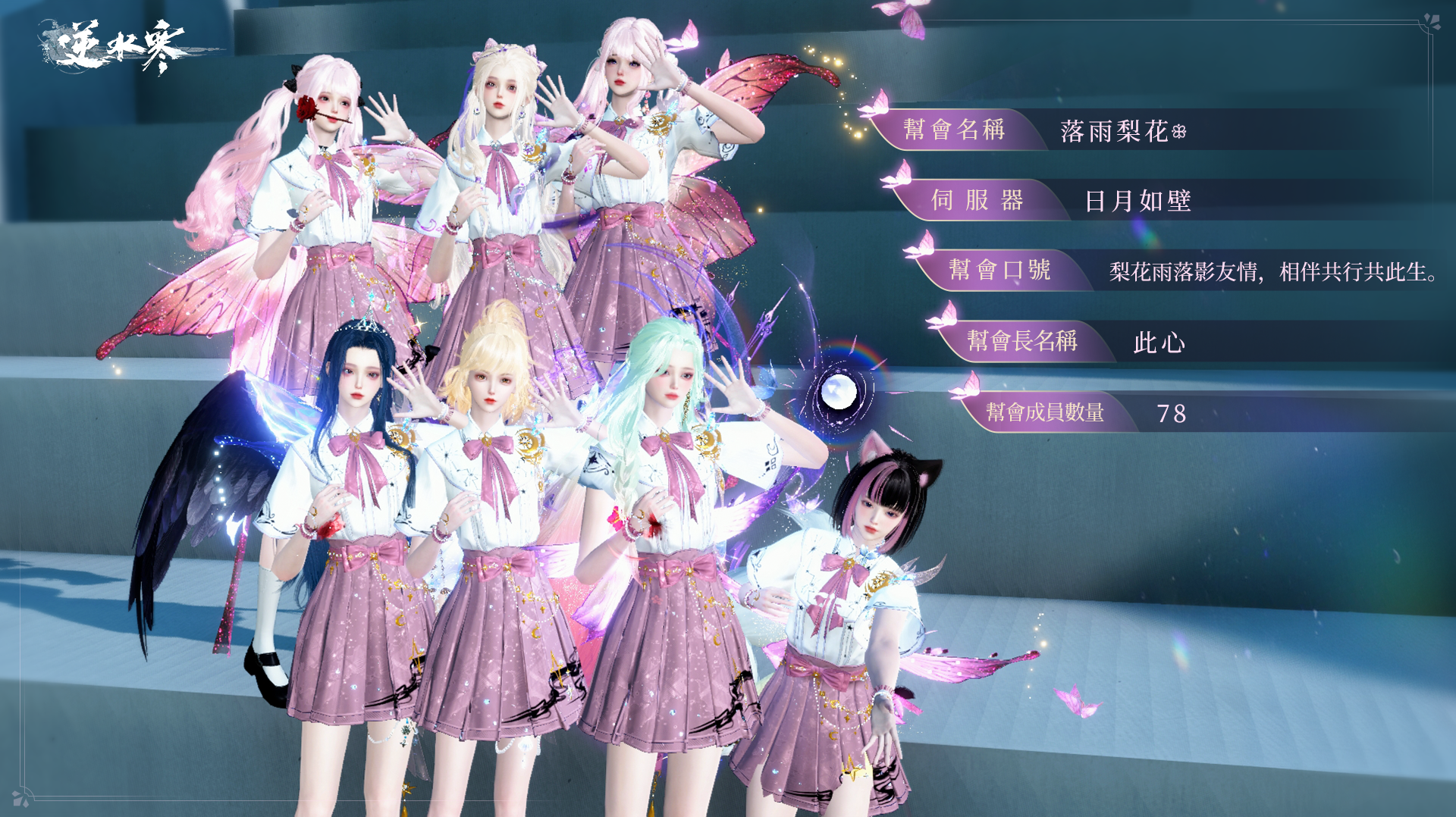由幫會長【此心】帶領,集結了 78 位追求極致唯美的夥伴,要在【日月如壁】伺服器綻放出最動人的光芒!
