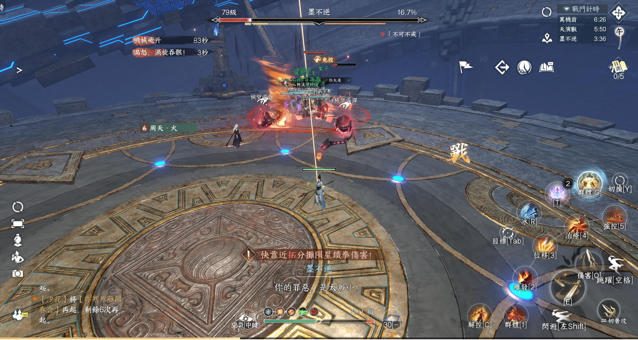 機制三:隕星鐵拳。首領向一位最遠距離的玩家發射鐵拳,隨後造成高額傷害。
