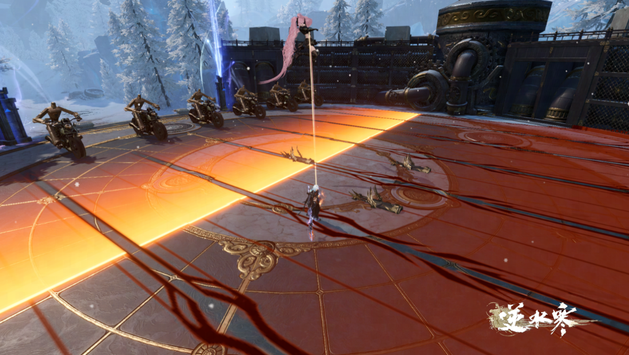 作為墨不逆的主場,墨不逆釋放終極技能「渦旋吞骸」後,將吸收天機迷城的能量,積蓄終極一擊,同時召喚漫天飛舞的鋼鐵鏈刃進行攻擊。或許,您可以利用他的貪婪和鋼鐵鏈刃,予以回擊?
