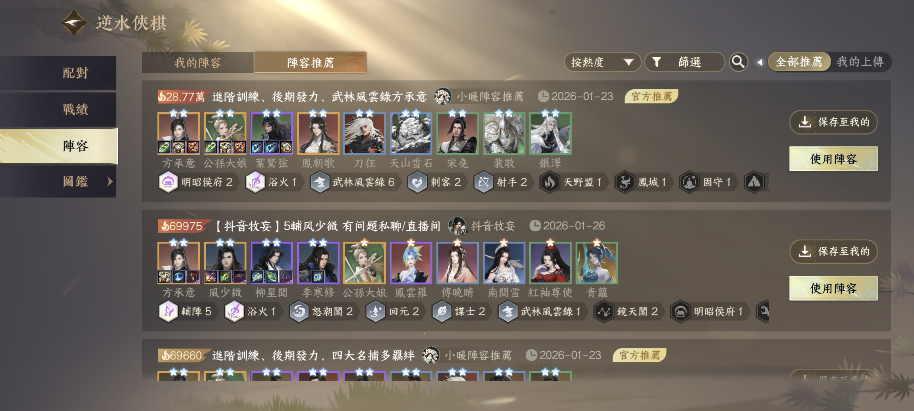 覺得上面都太複雜?沒關係!阮阮教你一招: 點擊介面上的【陣容】按鈕 ➡ 選擇【推薦陣容】 ➡ 一鍵應用!