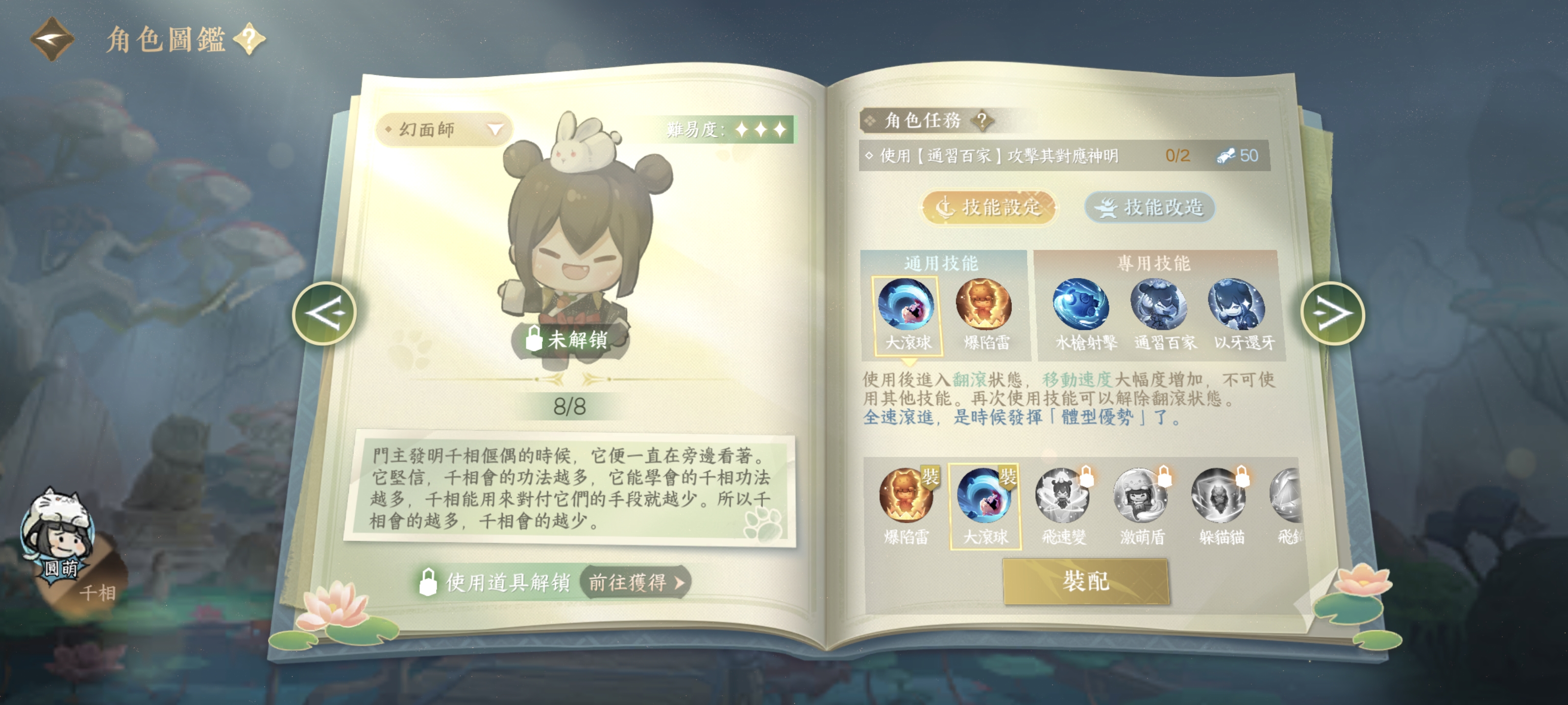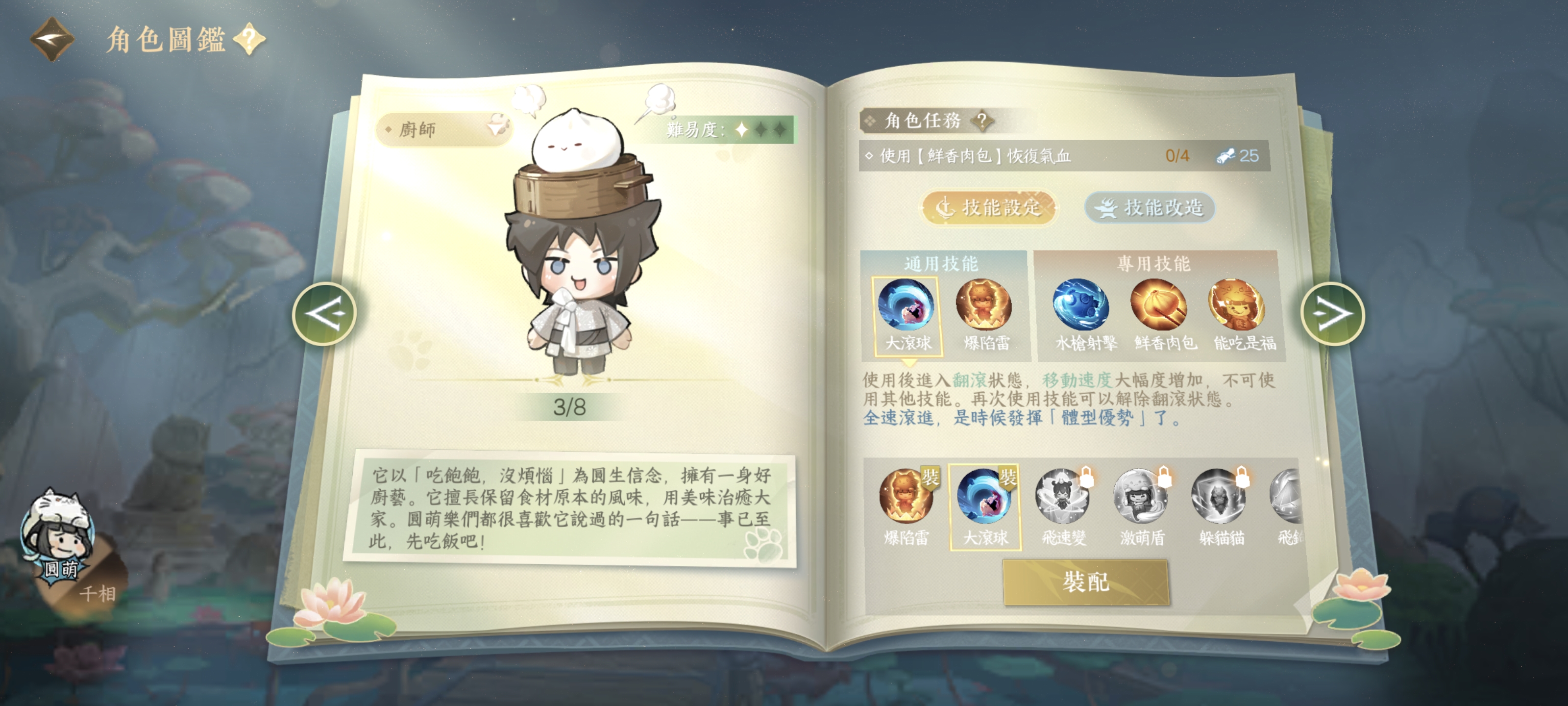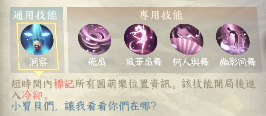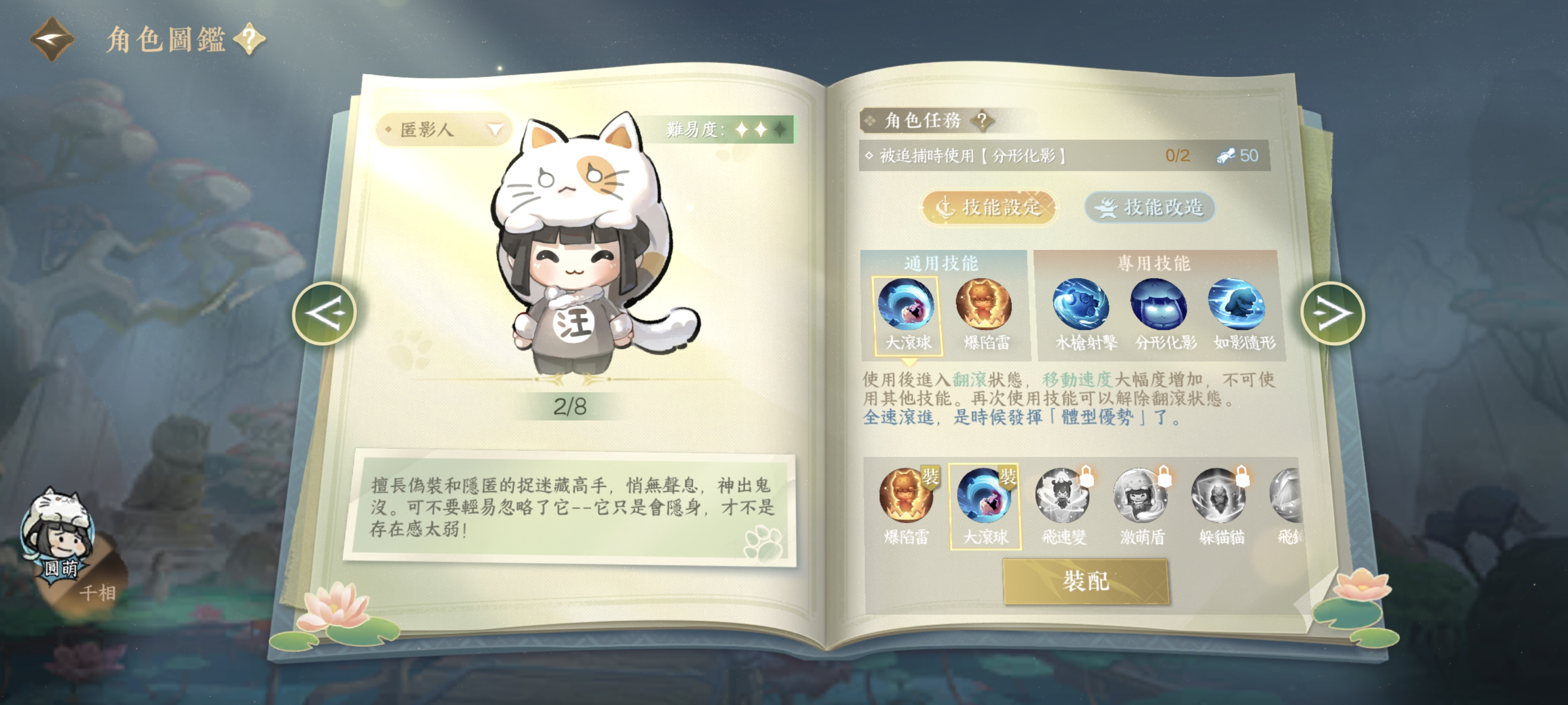 【匿影人】、【廚師】等圓萌樂搭配通用技能【大滾球】、【飛身移】可快速逃離千相視野。